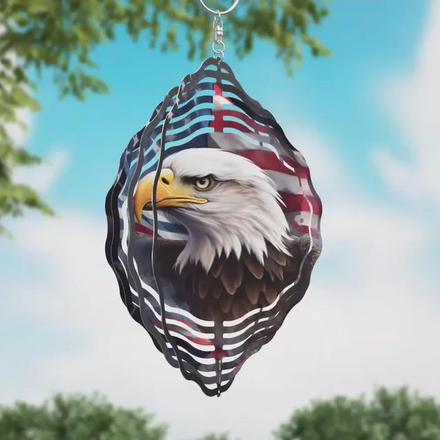 American Flag Eagle Novelty Metal Wind Spinner - 10"