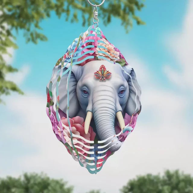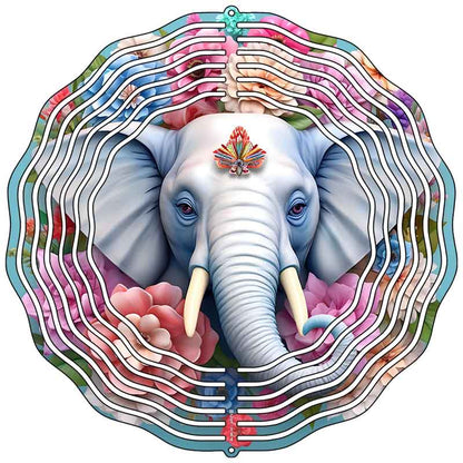 Elephant with Flowers Metal Wind Spinner