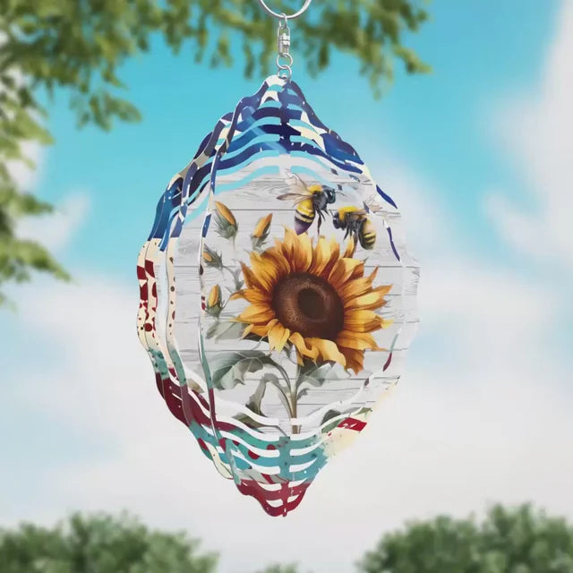 Sunflower with American Flag Novelty Metal Wind Spinner - 10"