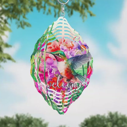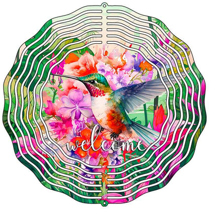 Welcome Hummingbird Novelty Metal Wind Spinner