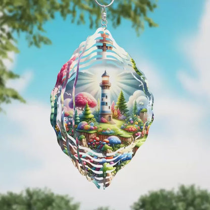 Whimsical Lighthouse Novelty Metal Wind Spinner - 10"